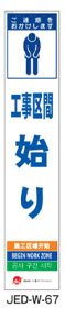 工事看板 【工事区間始り】 4ヵ国語表記入り JED-W-67 訪日観光者対応 高輝度白反射 スリムサイズ 275mm×1400mm JEDロゴ入り 観光庁 【鉄枠付】