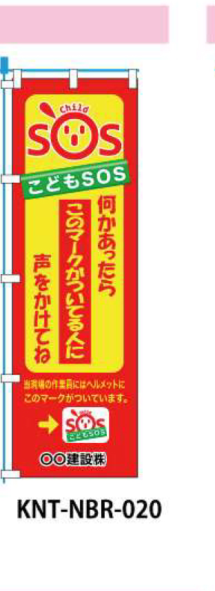 のぼり旗 【こどもSOS】 W450mm×H1500mm NBR-020白生地+フルカラー印刷 反射材付き 短期工事向け 安全標識