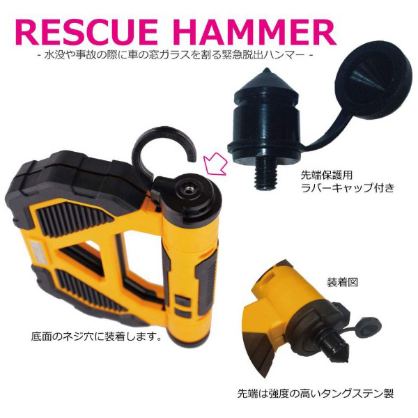 ※レスキューハンマーはサイドドア窓、リア窓用です。フロントガラスには使えません。