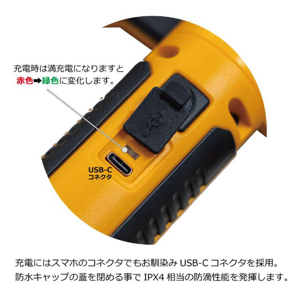 ※低温環境でご使用の場合、点灯時間が短くなります。USB出力 USBポート*1個 5V/1.5A 作業温度