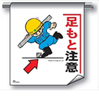 単管たれ幕 まんがタイプ205 足もと注意 600mm×450mm 工事現場用 垂れ幕 イラスト入り