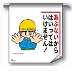 単管たれ幕 まんがタイプ207 あぶないからはい 600mm×450mm 工事現場用 垂れ幕 イラスト入り