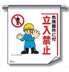 単管たれ幕 まんがタイプ225 危険箇所に付立入 600mm×450mm 工事現場用 垂れ幕 イラスト入り