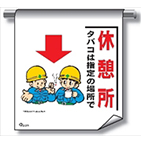 単管たれ幕 まんがタイプ229 休憩所タバコは指定 600mm×450mm 工事現場用 垂れ幕 イラスト入り
