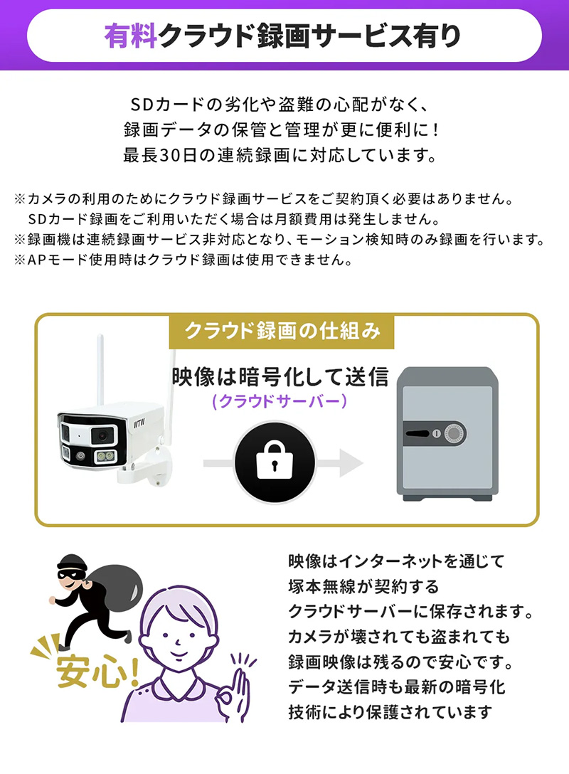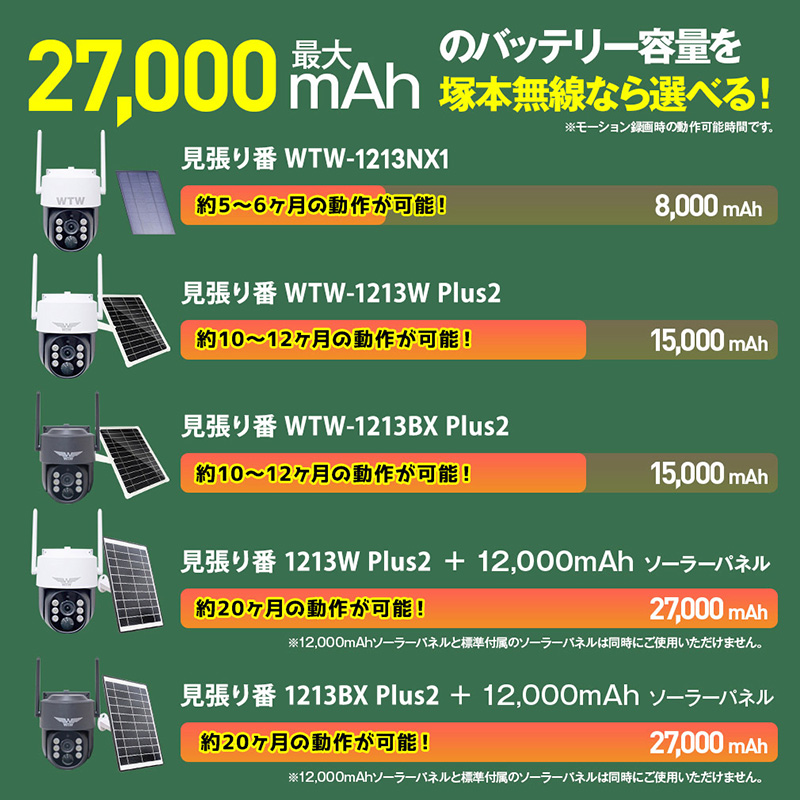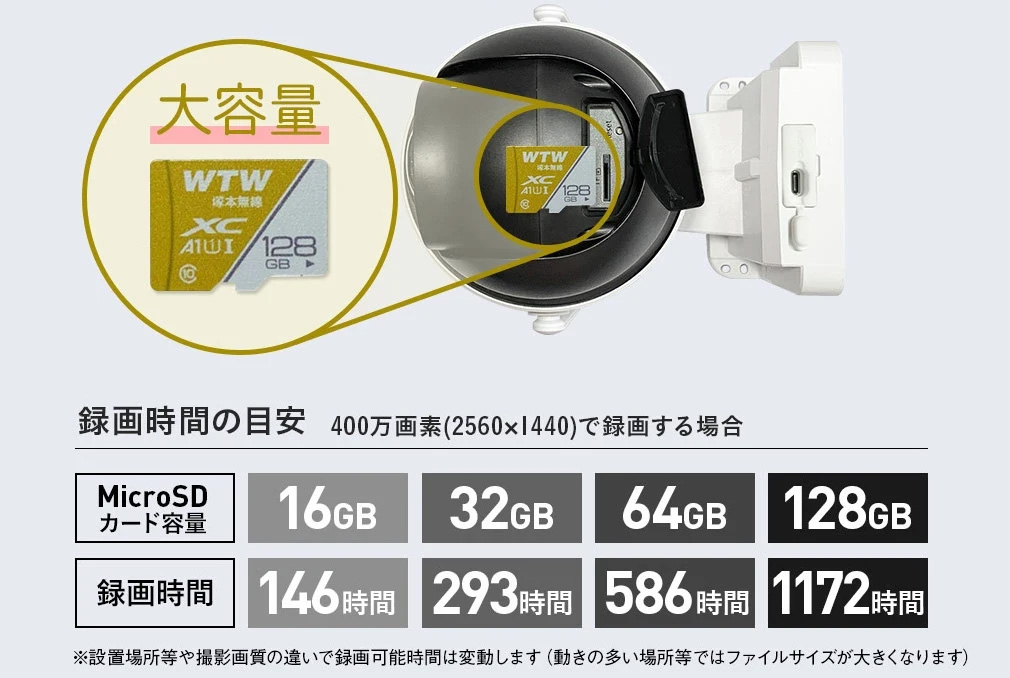 ●被写体や周辺環境、電池寿命、SD劣化などの要因により、記録可能時間は変化します。