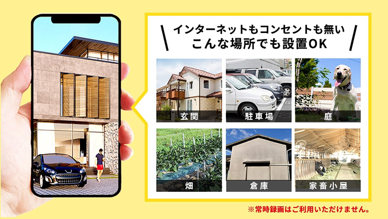 ●防犯カメラを設置するよりコストおよび設置時間ともに約10分の1以下でできます。