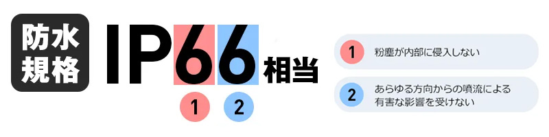 ※ 防水・防塵性能はメーカー試験方法に よるものです。