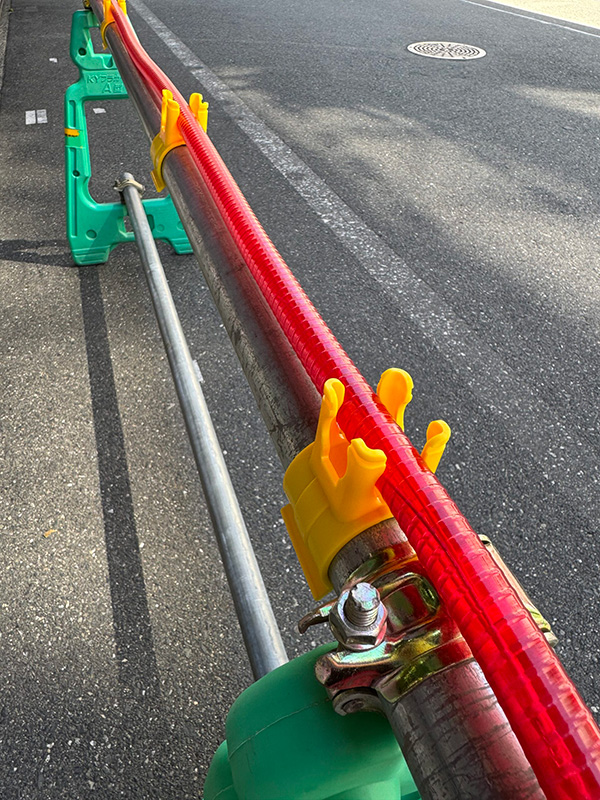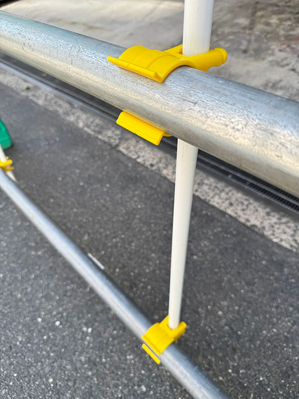 - 番線や紐での緊結が不要になります。 設置・撤去にかかる時間を大幅に短縮し、作業効率が向上します。
