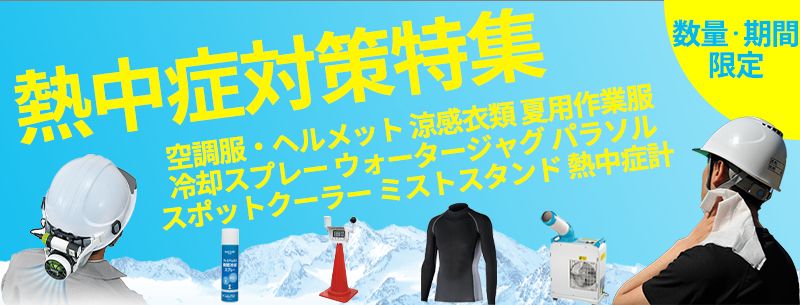 空調機能を備えた作業衣類・ヘルメット、冷却・保冷グッズ、熱中症予防の注意喚起に最適な様々なタイプの熱中症計・垂れ幕など、これからの季節における熱中症予防・対策に欠かせない様々な商品を取り揃えております