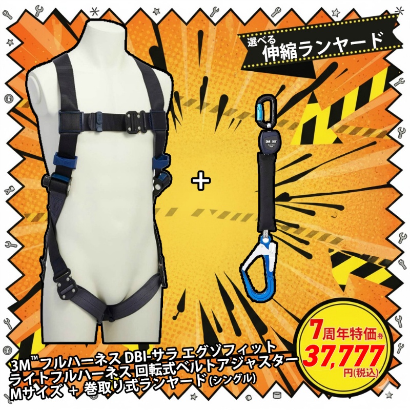 【7周年記念 七福神セット⑦-2】3Mフルハーネス+選べるランヤードセット 巻取式ランヤードシングル を買うなら保安用品のプロショップ メイバンオンライン