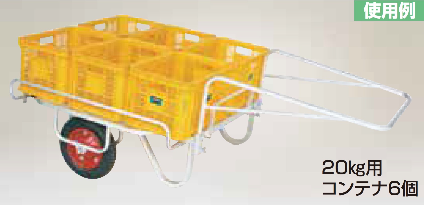 コンパクトながら積載重量は120kgあり、20kg用の収穫コンテナであれば一度に6個(平積み)運ぶことができるパワフルな設計です。