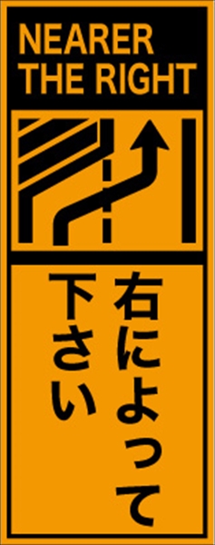 工事看板 【右に寄って下さい】 英語表記入り プリズム蛍光高輝度オレンジ W275mm×H1400mm 【鉄枠付】 安全標識 工事中看板 EPX-017