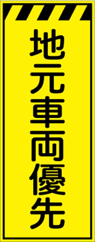 工事看板 【地元車両優先】 プリズム蛍光高輝度イエロー W550mm×H1400mm 【鉄枠付】 安全標識 工事中看板 CPF-544-Y