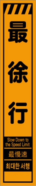 工事看板 【最徐行】 多言語入り プリズム蛍光高輝度オレンジ スリムサイズ W275mm×H1400mm 【鉄枠付】 安全標識 工事中看板 CPF-533