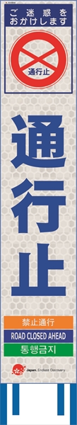 訪日観光者対応看板 Japan Endless Discoveryマーク入り品番 JED-W-63 【通行止】 シート種類 3M製プリズム高輝度反射シート サイズ 板面サイズ:H1400×W275mm 鉄枠 25mm角 ブルー 鉄枠サイズ 280mm×1550mm
