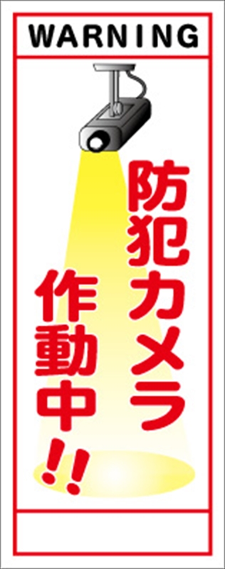 社名印刷をご希望の方は、ページ右側「お買い物かご」上部の【看板_企業名】欄に入力をしてください。種別 イメージアップ看板 お知らせ看板 文言 防犯カメラ作動中!! サイズ W550mm×H1400mm 板面タイプ 無反射/封入反射/高輝度反射