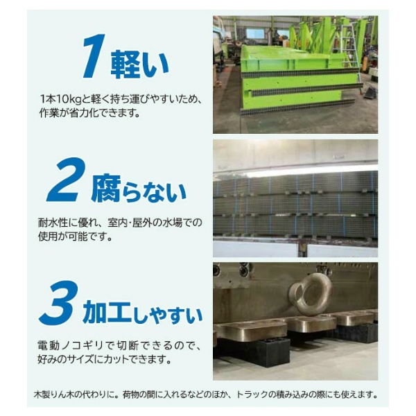 木製のりん木よりも軽く、荷物の間に入れるなどの他、トラックの積込の際にも使えます。