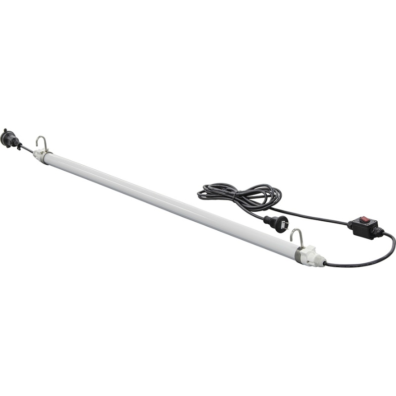 使用光源 高輝度チップタイプ白色LED×126個 明るさ 約1800ルーメン 輝度 約815カンデラ 電源 ACアダプター(入力:AC100-120V 50/60Hz、出力:DC125V 7A) 消費電力 18W 照射距離 約57m 照射角度 約240° 保護等級 耐塵・防噴流仕様(IP65準拠) 本体サイズ 約φ33.0×長さ1200.0mm