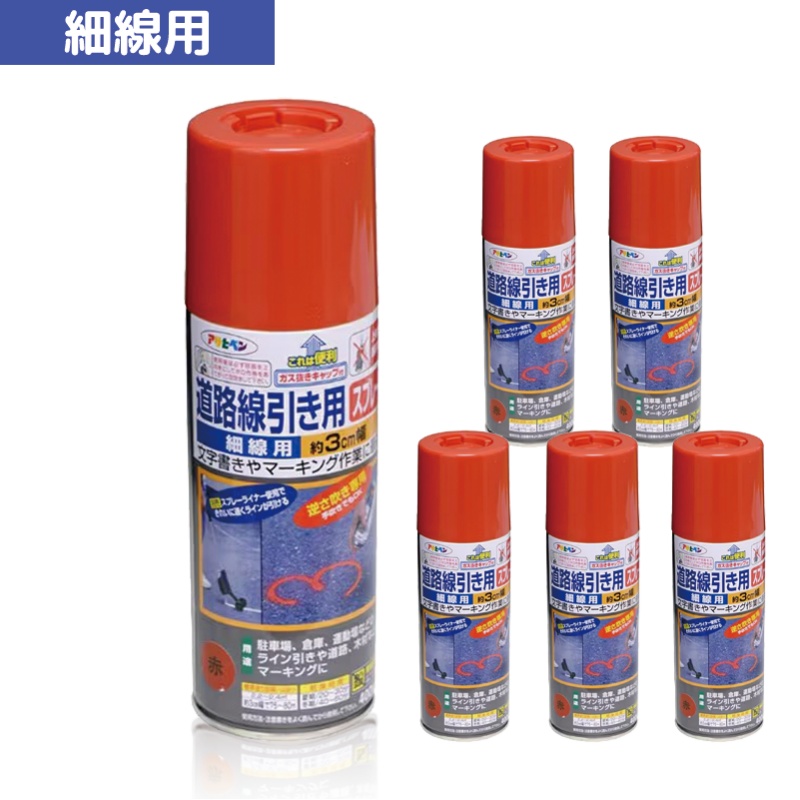 【1ケース6本入】 道路線引き用スプレー 細線 3cm幅赤 400ml 速乾性 1回塗り つや消し 屋内外 アスファルト・コンクリート用 丸吹きノズル 安全ガス抜きキャップ付き マーキング用 アサヒペン