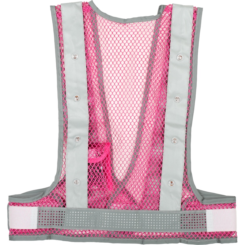 メッシュベスト 緑LEDアラベス ピンク/シルバー 粗いメッシュ 通気性抜群 高視認性 夜間 工事現場 交通整備 熱中症対策 MBL-LED-PS-G 三ツ星貿易