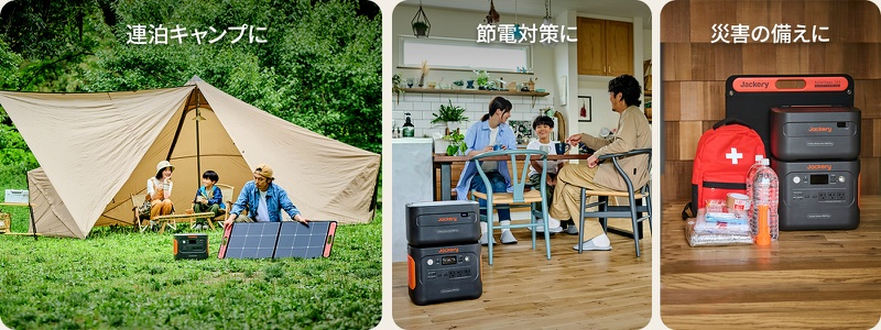 連泊キャンプや車中泊での長距離旅行、オフィスや家庭での緊急時のバックアップ電源としてご活用いただけます。