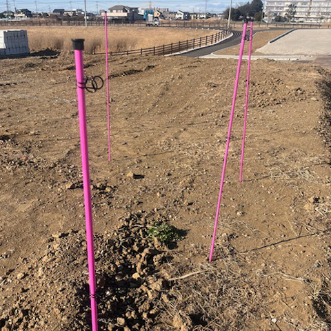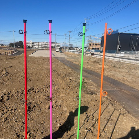 現場で鉄筋ピンや木杭を打った後、一つひとつに手作業でピンクテープを括り付けていませんか?