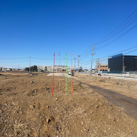 - 資材置き場の明示:「ピンクの区画は重機・車両用」
