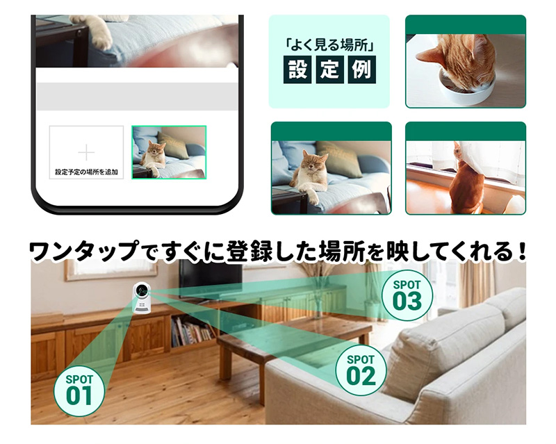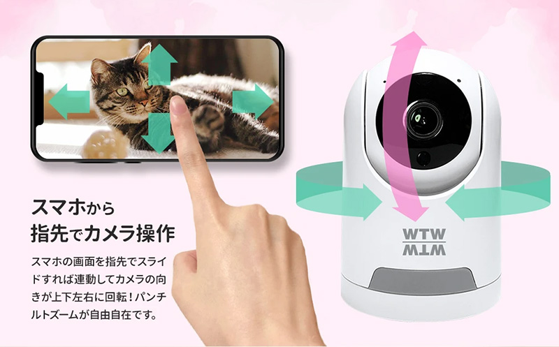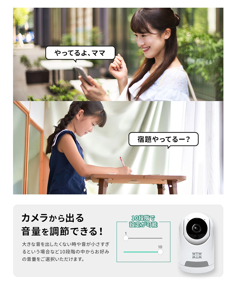 スマホでリアルタイム映像を確認しながらカメラ側に話しかけることが可能です。
