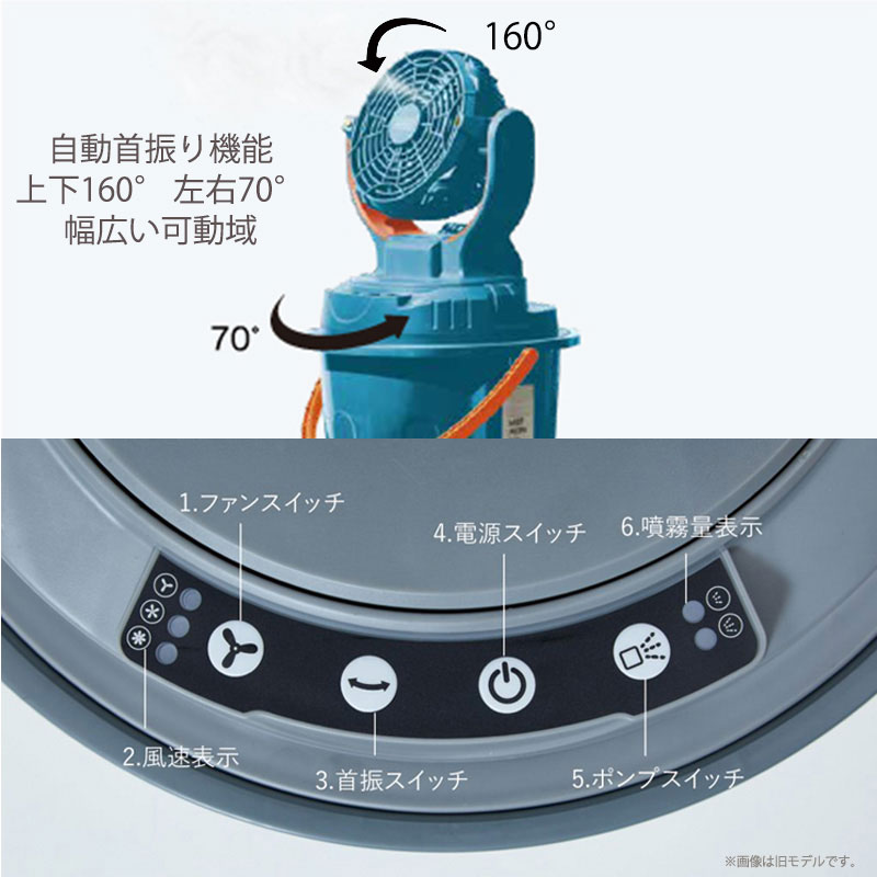 (首振りOFFの場合最大17時間稼働)充電器入力 AC100~240V、50/60Hz 充電時間 約3時間 風量切替 3段階 ミスト噴霧量 強(5.5L/h) 弱(4.9L/h) ミスト噴霧距離の目安 約3m 本体サイズ バケツの上に置いた状態:約400×370×710mm