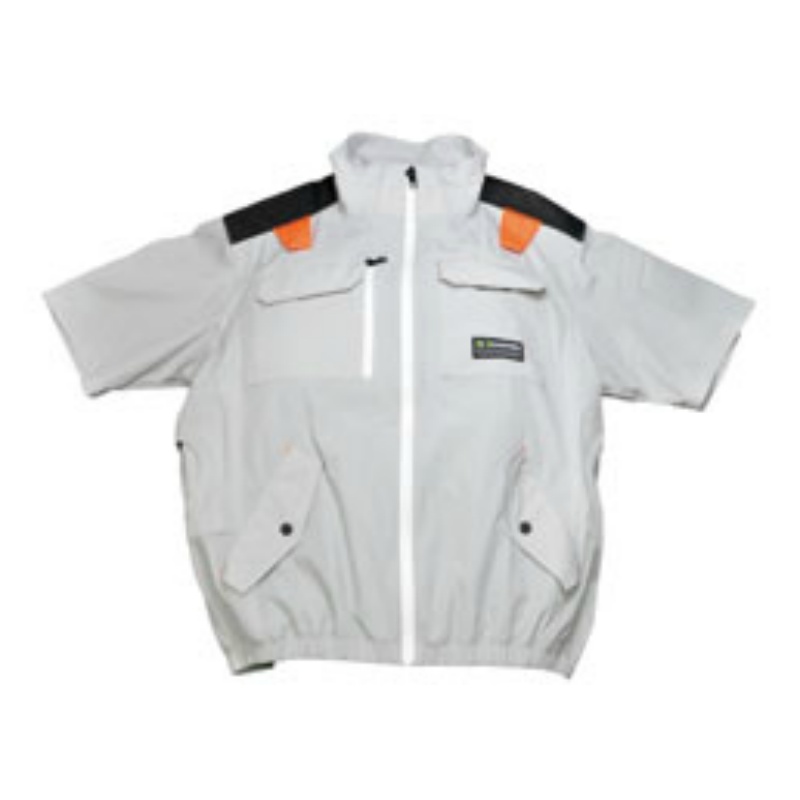 【ファン・バッテリー別売】空調ワークウェア 半袖 シルバー M~6L AR-6282 選べる4つのファン取付口 QuickFreeジッパー ランヤード取付口/反射材付 AirRevolution KMネクスト