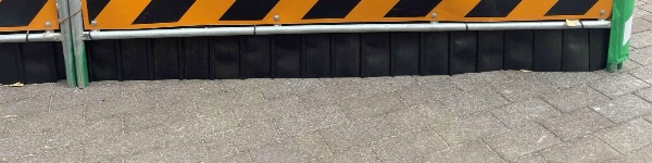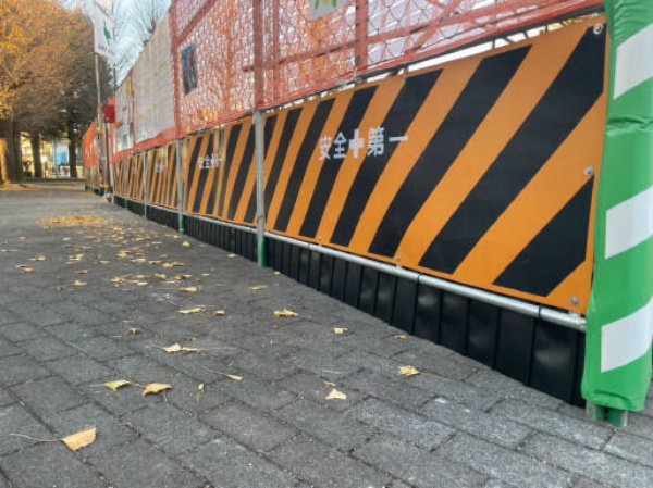 ガードフェンス(B型バリケード)下部の隙間をしっかりガード!不陸に合わせて微調整が可能な目隠し養生材「バシャット」