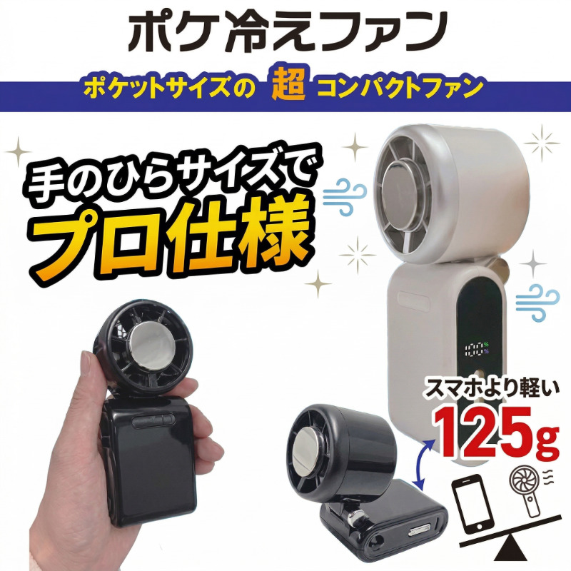 製品名 冷却プレート付ハンディ扇風機 ポケ冷えファン 品番 ホワイト:PRF-11W / ブラック:PRF-11B サイズ 高さ約110mm × 幅約46mm × 奥行約38mm 重量 約125g バッテリー リチウムイオン電池 3.7V 3,000mAh 風量調整 5段階(20-40-60-80-100) 風速 最弱:約7m/s ~ 最強:約11m/s 充電時間 約3時間30分(5V 2Aでフル充電時) 連続使用時間 ファンのみ(最弱):約8時間 / ファン+冷却プレート(最強):約1時間10分 使用環境温度 -10°C ~ 50°C 材質 ABS・ステンレス鋼 付属品 本体、充電用USBケーブル(Type-C)、首掛けストラップ、取扱説明書 - 髪を乾かしたりしないでください。