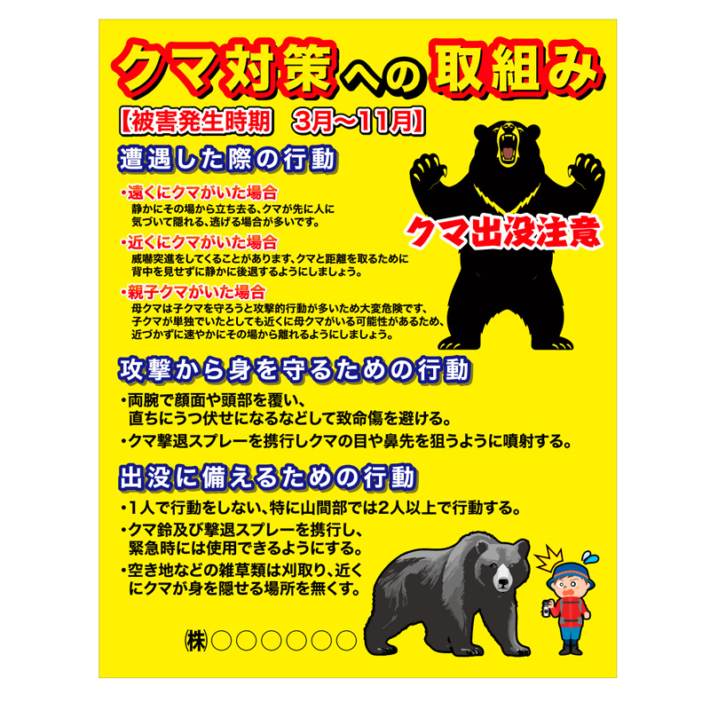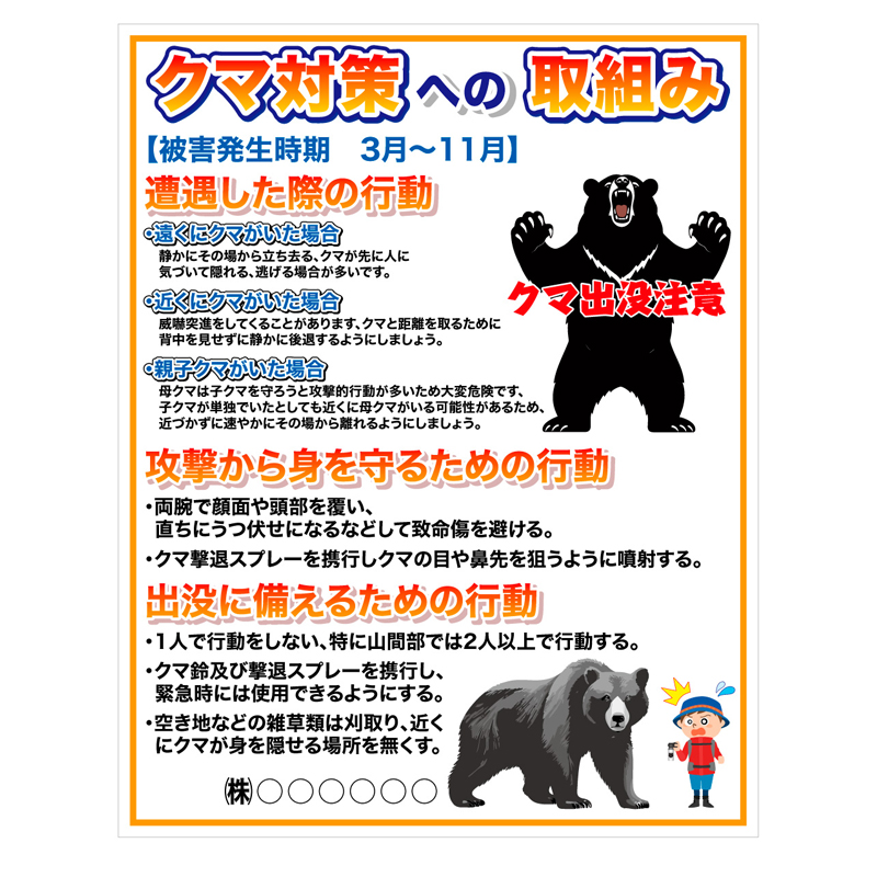 【自立式鉄枠付】お知らせ看板 【クマ対策への取り組み】 1100mm×1400mm 注意喚起 ご近隣