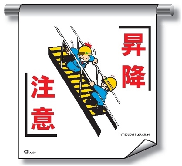 単管たれ幕 まんがタイプ235 昇降注意 600mm×450mm 工事現場用 垂れ幕 イラスト入り