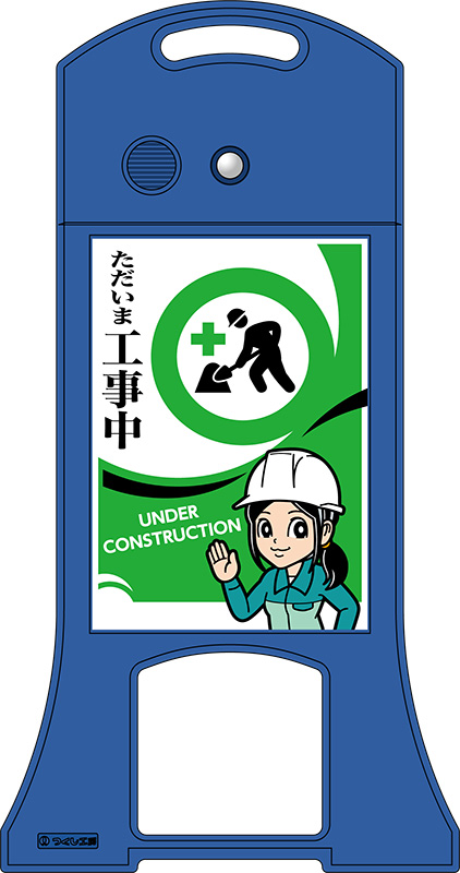 多言語音声看板 ウィスパースタンド 【ただいま工事中】 WS-51 940mm×500mm×450mm 乾電池式 受動型赤外線検出 人感センサー 注意喚起 音声警報標識 つくし工房