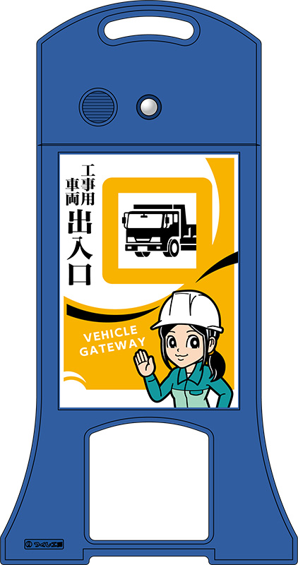多言語音声看板 ウィスパースタンド 【工事用車両出入口】 WS-52 940mm×500mm×450mm 乾電池式 受動型赤外線検出 人感センサー 注意喚起 音声警報標識 つくし工房