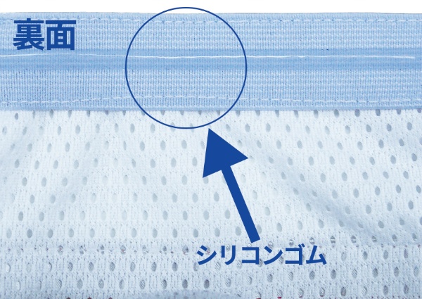 ・伸縮部分の裏側にシリコンゴムを使用。ヘルメットに密着し、滑り落ちを防止。