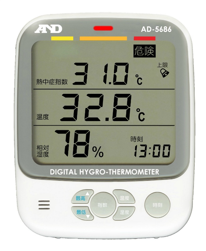 熱中症指数(WBGT)と温度・湿度を一覧表示