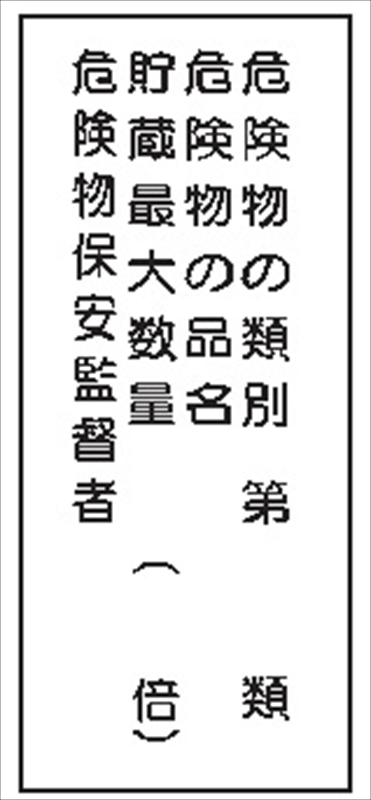 危険物標識 【危険物の類別-】 600mm×300mm メラミン鉄板製 K16(A)