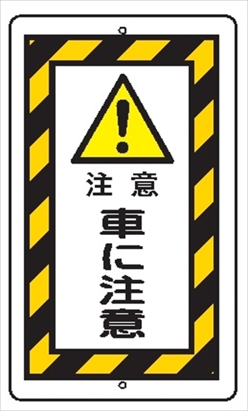 安全標識 【車に注意】 680mm×400mm メラミン焼付鉄板製 ポール設置型(上下穴2箇所) R21 構内安全標識 構内安全標識 構内安全標識