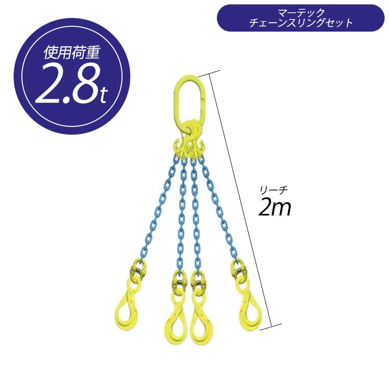 チェーンスリングセット 4本吊り 2.8t2.8t マーテックGチェーンスリング TG4‐EGKNA 6mm×2m 大洋製器工業 TAIYO