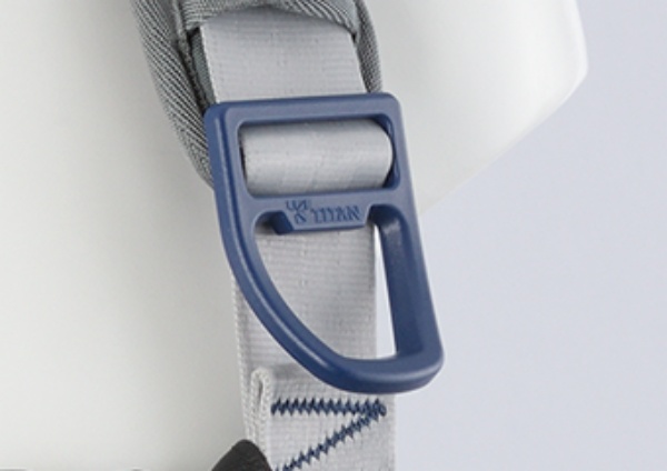 広い開口部に加え絶妙なカーブが、フックの先端を捉えます。両胸に装備。