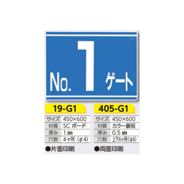 ゲート標識 No.1 ゲート 19-G1 450×600mm 片面印刷タイプ