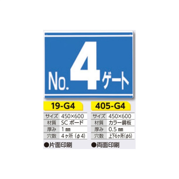 ゲート標識 No.4 ゲート 19-G4 450×600mm 片面印刷タイプ