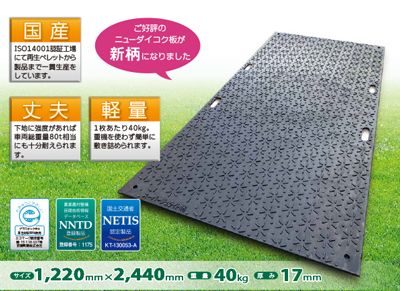 従来から利用されている鉄敷板やコンパネなどと比較しながら、工事の内容にあわせた敷板の利用を検討するとよいでしょう。