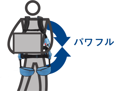 リュックサックのように背負って、ベルトを締めるだけで装着完了。難しい操作もないので、どなたでもお使いいただけます。